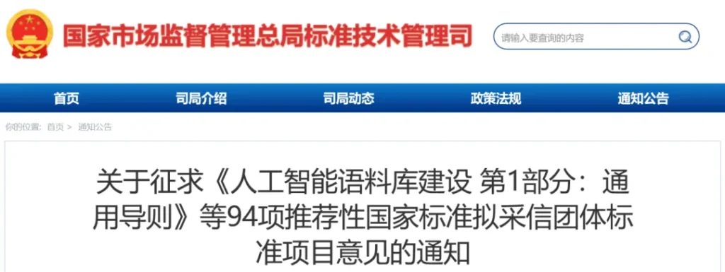 经研究,现对《人工智能语料库建设 第1部分:通用导则》等94项推荐性国家标准拟采信团体标准项目公开征求意见,征求意见截止时间为2026年1月10日。请登录标准技术司网站征求意见公示网页https://std.samr.gov.cn/gb/gbSuggestionPlan?bId=10002850,查询项目信息和反馈意见建议。